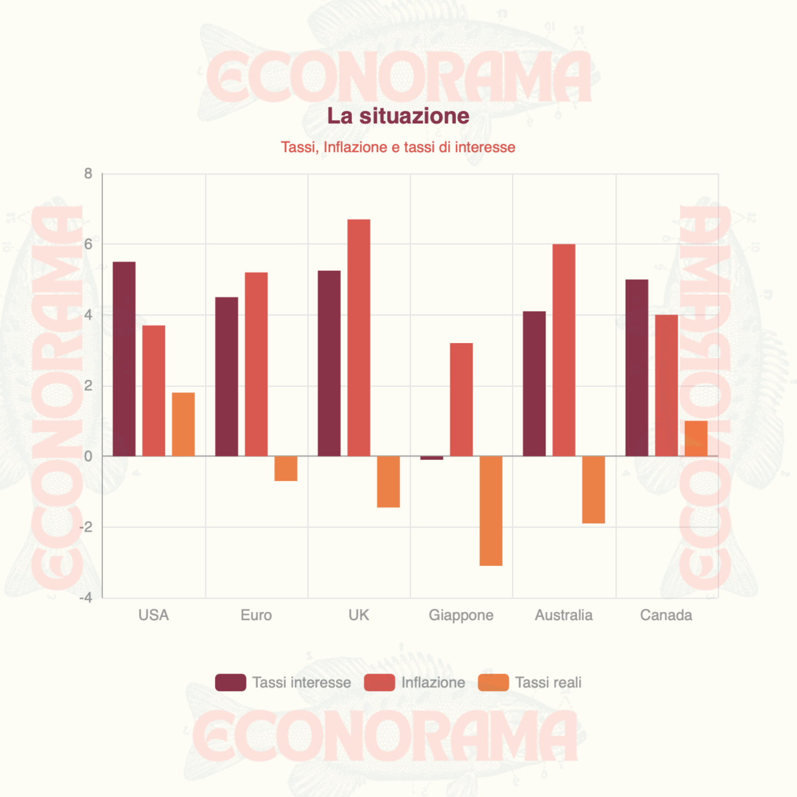 Gli Stati Uniti possono permettersi, a fronte di un’inflazione che è tra le più basse, di avere tassi reali che sono i più alti. Segno di forza del re, ma anche della capacità del greenback di fare sacrifici che gli altri non possono permettersi economicamente o politicamente.